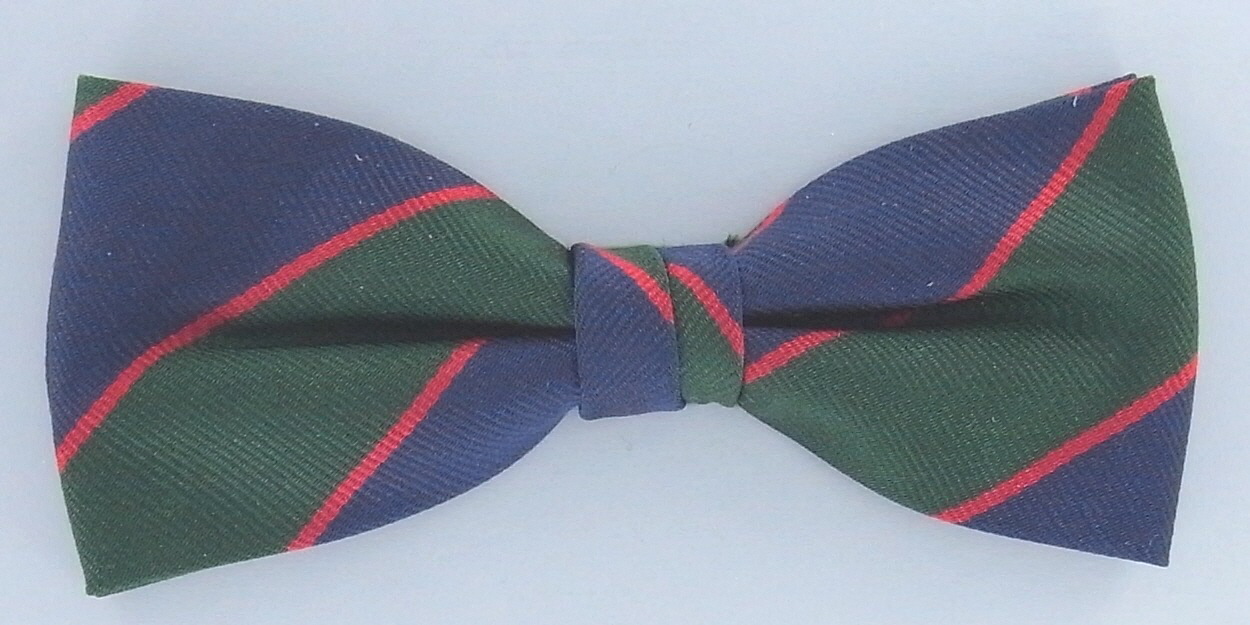 Navy and Forest Green block stripe with fine Red split stripe. 5cm depth with adjustable neckband.